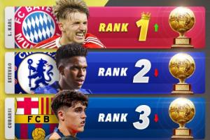 体育资讯01月31日讯 Score90列出了2026年金童奖最新排名预测,卡尔居首,埃斯特旺、库巴西分列二三。其中,拜仁小将卡尔距上次排名上升了两位,来到榜首位置。