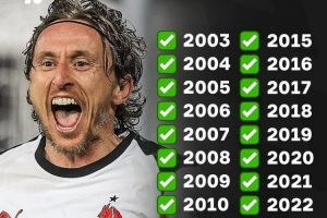 体育资讯2月17日讯 OneFootball统计表明,莫德里奇连续24年在成年足球赛事中取得进球。