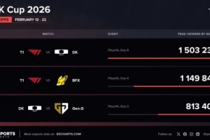 体育资讯2月24日讯 外媒统计2026LCK杯海外峰值: