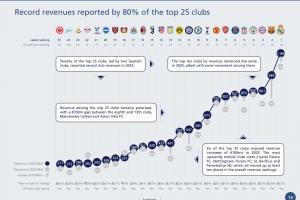 体育资讯02月26日讯 欧足联官方发布了《2025俱乐部财务与投资格局报告》,其中对所有欧足联球队在2025年的收入进行了排名,皇马以11.84亿欧元的收入排名第1,巴萨、拜仁分列二、三名。