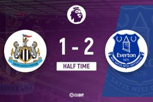 纽卡2-3不敌埃弗顿,自2021年1月以来首次遭遇联赛主场三连败