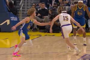 他俩说啥呢!下半场开始库里和詹姆斯窃窃私语两句