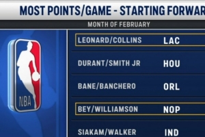 坎宁安过去6战场均至少25分5板10助2断2帽 此前仅詹姆斯打出过