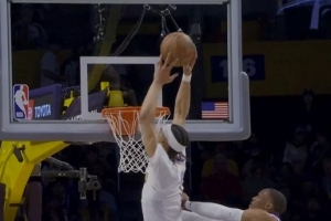 望无大碍!科林斯助攻尼德豪泽暴扣 但自己手臂被撞伤痛苦倒地