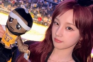 韩国女子演唱组合i-dle成员宋雨琦(中国内地女歌手)又一次来到现场看自己的偶像詹姆斯,她在社媒写道:“Let's go lakers 💛💛💛 ”