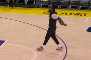 “左肘挫伤和左脚关节炎是詹姆斯在常规赛中一直面临的问题,”Malika Andrews说,“他像往常一样完成了赛前热身——今早7点45分,他首位抵达球馆;8点45分便开始在场上进行常规赛前训练。(视频)画面中可见当时他的状态相当不错,但脚部反应未达到湖人队及训练团队的预期。因此在距离开球约一小时时,球队宣布他本场休战。据了解,此次缺阵主要源于脚部问题而非肘部伤势,接下来他将进入逐日观察状态。”
