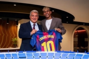 亚马尔在社交媒体上晒出与拉波尔塔的合照,对此拉波尔塔说道:“亚马尔发的照片让我深受感动,我非常感谢他。”