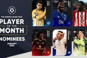 体育资讯2月5日讯 PFA(英格兰职业球员协会)官方公布1月英超最佳球员候选,具体如下: