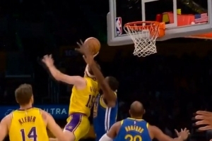 贝恩在詹姆斯头上投进45°关键三分 回头对后者喊:颜射你 勒布朗