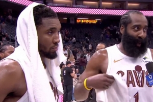 赛后,哈登接受了记者采访。当被问及这支骑士是不是和自己适配时,他说道:“百分之一百万适配(A million percent)。”
