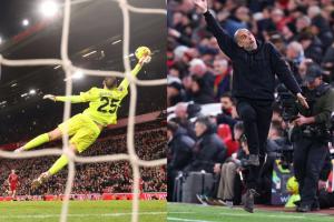 曼城2-1利物浦,多纳鲁马补时神扑,瓜迪奥拉场边震惊+模仿